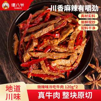 谭八爷 冷吃牛肉120g*2 微辣味肉干麻辣零食牛肉条四川特产即食源头直发