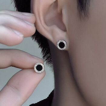 缔晶黑玛瑙耳钉男士痞帅925银耳环男生嘻哈耳饰单只一对韩版时尚饰品