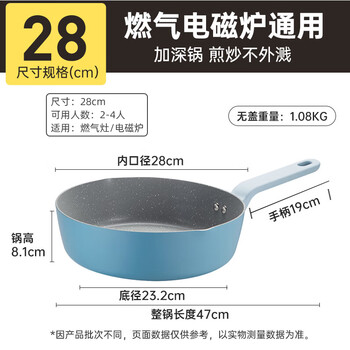 炊大皇平底煎锅 炒菜锅加深加高牛排煎锅多功能锅 电磁炉通用28cm