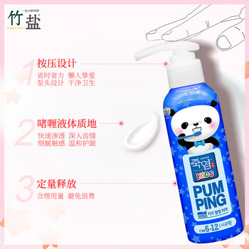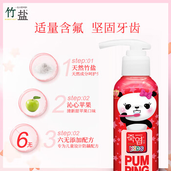 竹盐LG派缤按压式儿童牙膏低氟防蛀防龋齿6-12岁苹果味160g