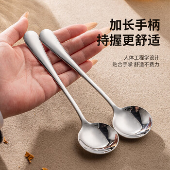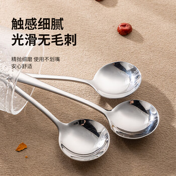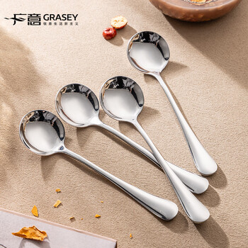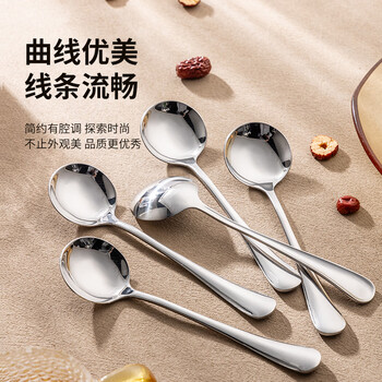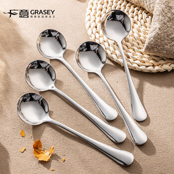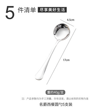 广意加厚不锈钢餐勺儿童家用汤勺吃饭调羹西餐厅勺圆勺5支装 GY7511