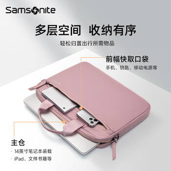 新秀丽(Samsonite)电脑包手提包女14英寸华为笔记本大容量商务公文包内胆包轻薄粉色