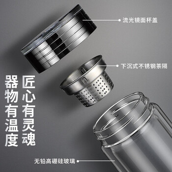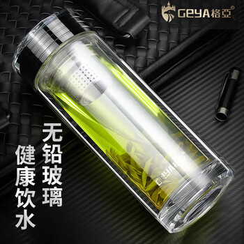格亚(GEYA)双层玻璃杯高端男士茶杯商务高透光泡茶杯耐热杯子办公室水杯定制