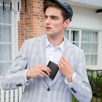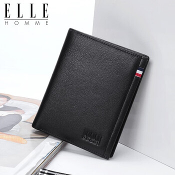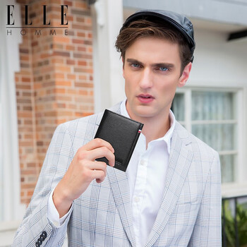 ELLE HOMME男士短款钱包 头层牛皮多功能票夹 竖款钱夹7530 生日礼物男