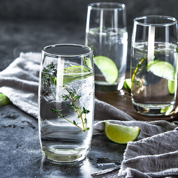 Ocean进口玻璃水杯茶杯杯子家用耐热饮料杯370ml六只赠托盘套装