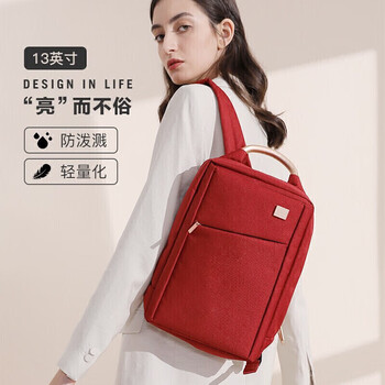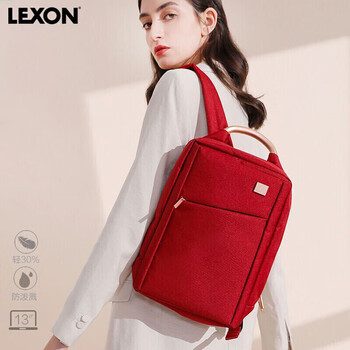 乐上(LEXON)双肩包女简约时尚书包休闲商务背包13.3英寸笔记本电脑包旅游红色