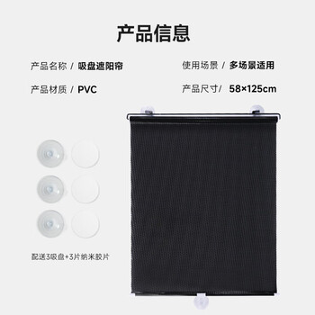 富居遮阳窗帘 免打孔防晒遮光隔热卷帘吸盘式自由伸缩58*125cm