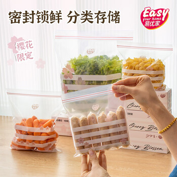易优家保鲜袋食品级密封袋中小号70只防串味厨房冷冻袋野餐露营密袋
