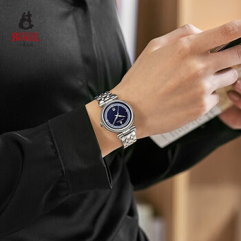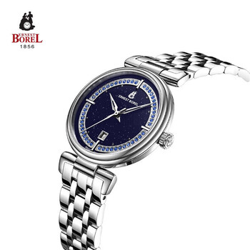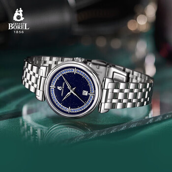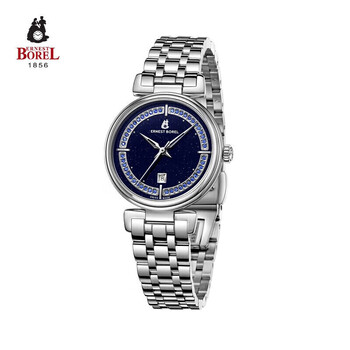 依波路(ERNEST BOREL)瑞士女士手表 女神礼物 星空蓝表盘镶施华洛世奇水晶星钻系列女表