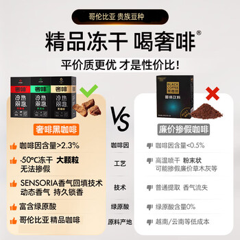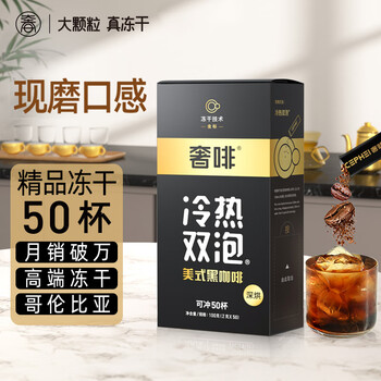奢啡金标现磨口感哥伦比亚精品冻干黑咖啡冷热双泡无糖0添加2g*50杯