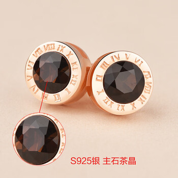 JOLEE耳钉茶水晶S925银玫瑰金色耳环时尚情侣耳饰品送男生节日礼物