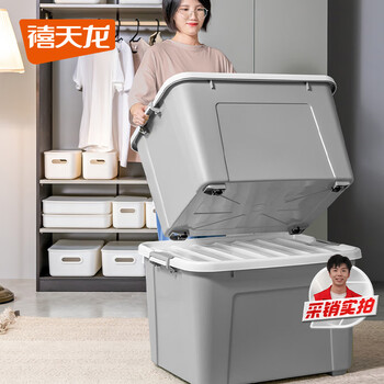 禧天龙塑料衣物收纳箱车载玩具整理箱80L 灰色 1个装 带轮