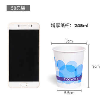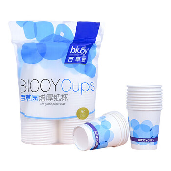 百草园 纸杯一次性杯子 250ml加厚纸杯50只装 9盎司增厚纸杯