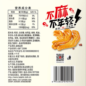 萨啦咪(Salami)麻味卤鸭掌78g 温州风味小吃特产休闲零食卤制熟食真空包装