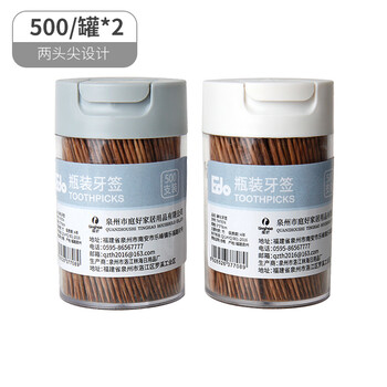 庭好 牙签碳化竹制双头【超值2盒*500只】白+灰盒子简约翻盖牙签