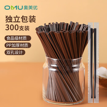 奥美优 一次性咖啡吸管搅拌棒果汁热饮奶茶直细两孔独立包装300支