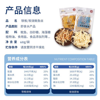 元臻 肉干肉脯 休闲零食 炭烧鱿鱼原味60g*2袋(新老包装随机发货)