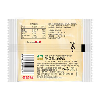 多美鲜(SUKI)奥地利进口 马苏里拉芝士片250g 冷藏即食 三明治 原制奶酪 早餐