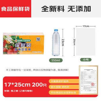 克林莱一次性保鲜袋盒装200只抽取式加厚食品袋家用厨房超市17*25cm