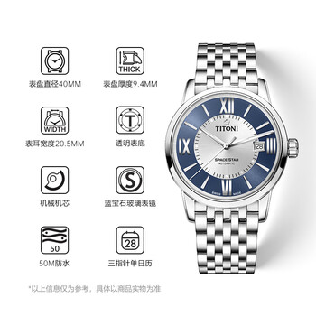 梅花(Titoni)瑞士手表进口 天星系列 自动机械钢带男士腕表83538-S-580礼物