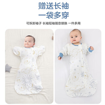 9i9婴儿睡袋纯棉防惊跳襁褓抱被投降式新生儿包被防踢被2套袖星月