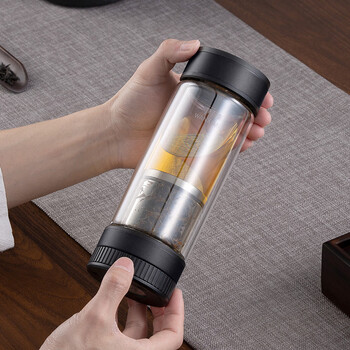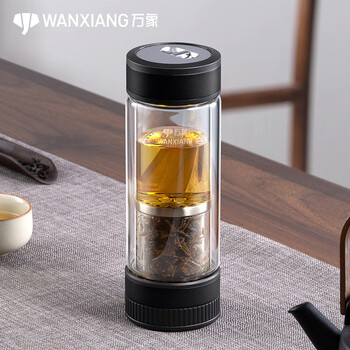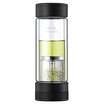 万象(WANXIANG)双层茶水分离玻璃杯V258L枪黑色商务办公礼盒装机械开关水杯