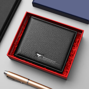 七匹狼钱包男士真牛皮夹短款礼盒送爸爸男友生日情人节实用礼物