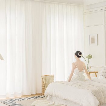 阿黎透光不透人阳台客厅飘窗卧室北欧窗帘白纱宽3*2.6挂钩款单片