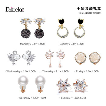 珠宝首饰---时尚饰品---耳饰黛若黛若无耳洞耳夹女一周星期耳环套装礼盒显脸瘦耳饰简约冷淡风气质森系个性耳坠送女友闺蜜情侣礼物