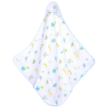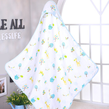 喜亲宝 纱布婴儿抱被包巾 全棉纱布新生儿抱被 带帽浴巾抱毯90*90CM蓝色