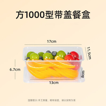 特美居(temeiju)一次性饭盒长方形透明塑料快餐盒加厚带盖打包盒餐具50套装1000型