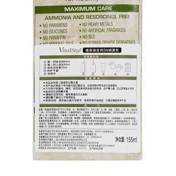 维彤VitalStyl进口染发膏3N棕黑色155ml天然有机植萃健康无氨盖白发