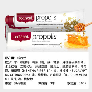 红印(Red seal) 新西兰进口蜂胶牙膏100g*2支 无氟牙膏 孕妇可用 清洁护龈