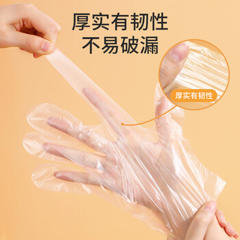 美丽雅一次性手套50只食品用抽取式塑料pe加厚防漏家用厨房透明薄膜