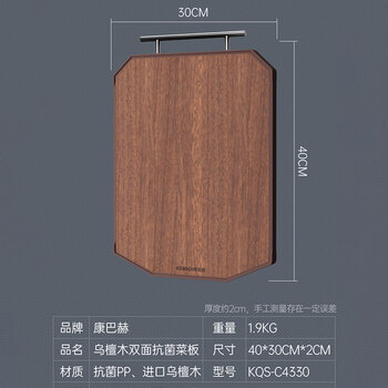 康巴赫菜板双面抗菌菜板砧板乌檀木整木切菜板切肉面板不易发霉40cm