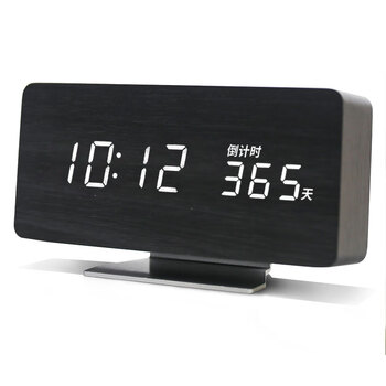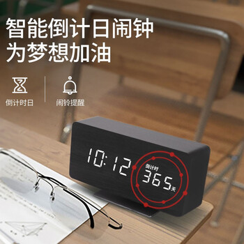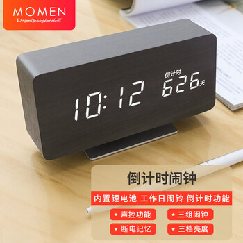 摩门(Momen)创意电子闹钟学生木质时钟卧室夜光床头简约DN4大款倒计时版黑色开学季