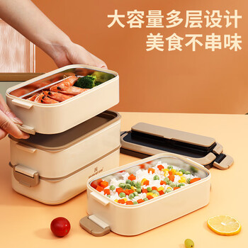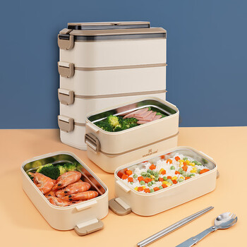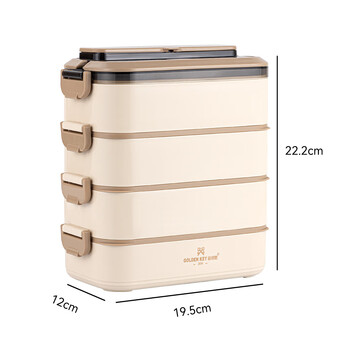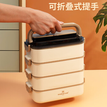 金钥匙(GOLDEN KEY)304不锈钢2.8L防溢四层便当多层可组合保温饭盒卡其色GK-2800FH-K