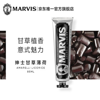 Marvis 玛尔仕 绅士甘草薄荷牙膏85ml(黑色)清新口气 呵护牙龈 牙膏中的爱马仕 意大利原装进口 玛尔斯