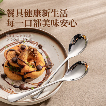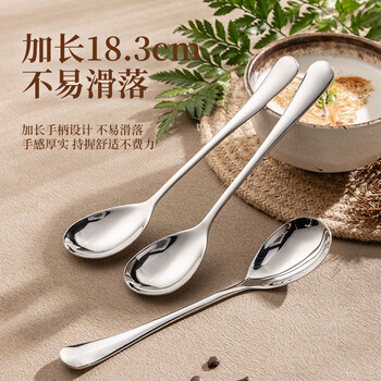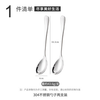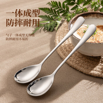 广意 304不锈钢汤勺汤匙 加大加厚勺子圆底餐勺吃饭勺子 2件套GY7881
