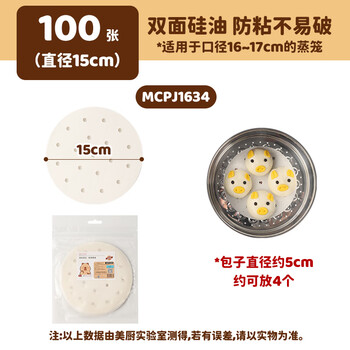 美厨(maxcook)蒸笼纸包子垫纸蒸包子纸笼屉纸一次性100张 直径15cm MCPJ1634