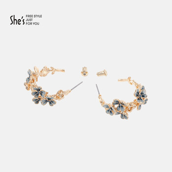 She's茜子手工滴油轻奢时尚耳饰梵高鸢尾花朵耳钉女生日礼物送女友