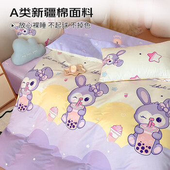 梦诗娜A类抗菌全棉儿童被套单件纯棉被罩学生床品150x200 小兔兔