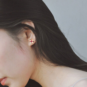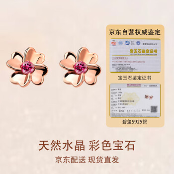 JOLEE耳钉彩色宝石碧玺S925银时尚玫瑰金色幸运草饰品送女生新年礼物