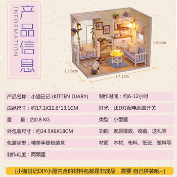 我の屋DIY小屋小猫日记手工制作木质房子模型屋创意减压玩具生日礼物女