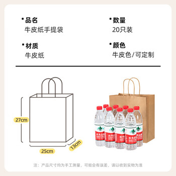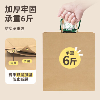 特美居(temeiju)一次性牛皮纸袋手提袋外卖打包袋食品奶茶包装袋子礼品袋大号20只