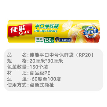 佳能 Glad 保鲜袋平口点断式中号150个 视频袋子 厨房超市RP20