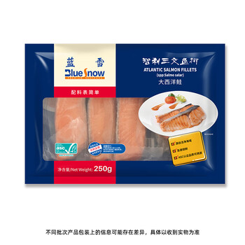 蓝雪冷冻三文鱼柳250g 大西洋鲑鱼ASC认证3-4块去刺去骨生鲜海鲜水产