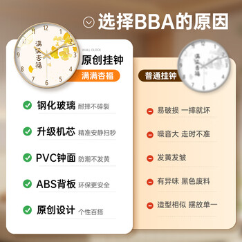 BBA挂钟新中式满满杏福客厅书房卧室餐厅家用创意钟表时钟30cm