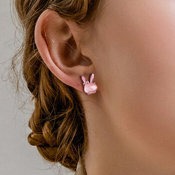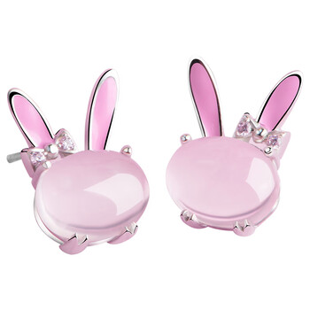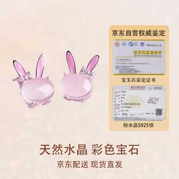 JOLEE耳钉天然粉水晶S925银时尚简约兔芙蓉石饰品送女生礼物一物一证