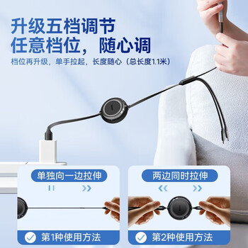 一拖三快充伸缩数据线Type-C to M+L+C 100W 1.1米黑色